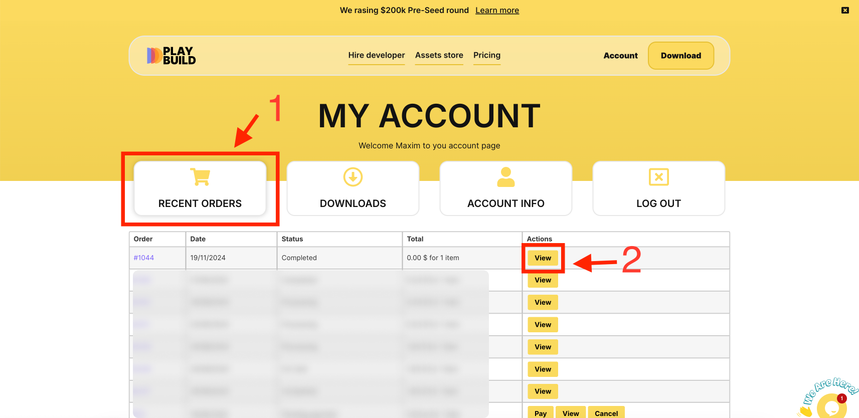 Find the specific order associated with your plugin purchase. You can identify it by the plugin name or order number and click “View”.